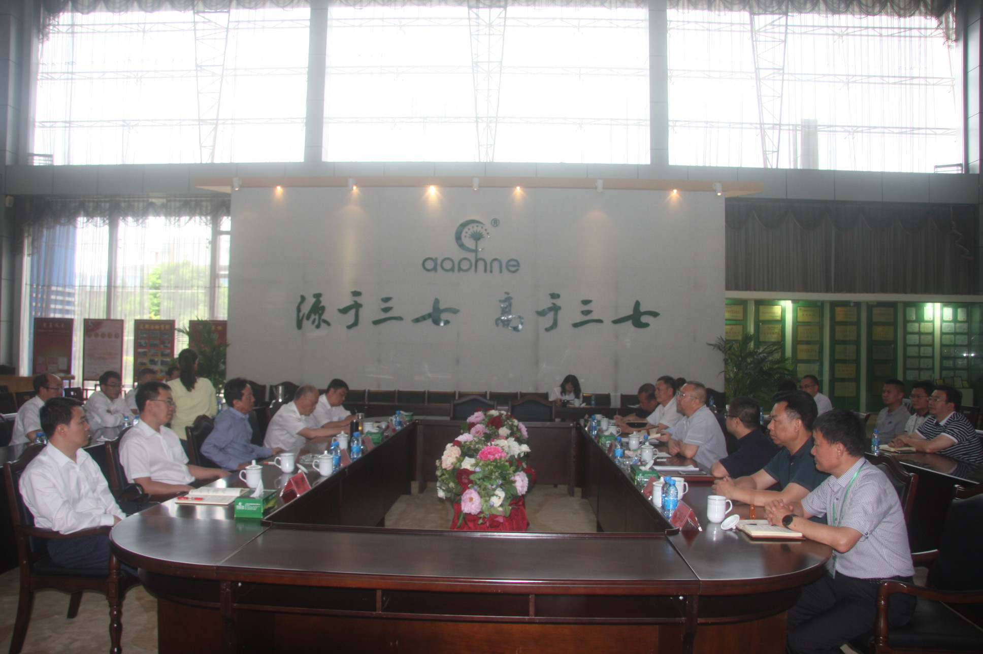 2018年6月27日,農(nóng)業(yè)行云南分行楊光廷行長一行在農(nóng)業(yè)銀行文山分行梁永行長的陪同下,蒞臨特安吶公司調(diào)研。特安吶公司董事長唐修文、總經(jīng)理孟維、常務(wù)副總經(jīng)理陳奕先等領(lǐng)導(dǎo)在展示廳迎接。唐董事長向楊行長介紹了公司的創(chuàng)業(yè)歷程及產(chǎn)品情況,回顧了企業(yè)從小到大、從弱到強(qiáng)的發(fā)展過程,公司從租賃手工作坊生產(chǎn)到擁有占地200余畝、16條生產(chǎn)線的現(xiàn)代化生產(chǎn)基地,主打產(chǎn)品從頭痛粉、安乃近片到血塞通片、七生力片、七生靜片等三七系列精深加工產(chǎn)品的轉(zhuǎn)變,構(gòu)建了“產(chǎn)品研發(fā)基地、三七GAP種植基地、中藥材加工基地、產(chǎn)品生產(chǎn)基地、物流倉儲基地”和“三七國際交易中心、商務(wù)服務(wù)中心、物資配套服務(wù)中心”為平臺的三七產(chǎn)業(yè)鏈。2015年,云南城投集團(tuán)旗下的云南三七科技有限公司增資控股特安吶公司,公司實力全面提升,發(fā)展一年比一年好。特安吶公司持續(xù)的發(fā)展,離不開金融部門的關(guān)心支持,特別是農(nóng)業(yè)銀行給予特安吶的支持,形成了銀企合作的一段佳話。對特安吶公司提出的融資需求,楊行長給予了積極回應(yīng),表示要繼續(xù)支持公司做強(qiáng)做大,在授信額度、融資信貸方面繼續(xù)予以大力支持。