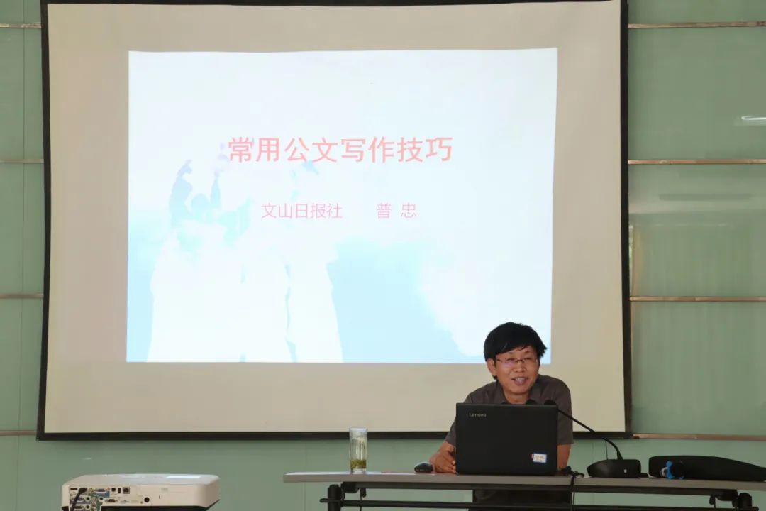 為進一步提升公司各層級管理人員公文寫作水平、拓寬寫作思路、提高寫作效率,著力鍛造一支提筆能寫、問策能對、壓擔能挑、團結(jié)協(xié)作的復合型隊伍。近日,特安吶公司組織開展一期公文寫作知識專題培訓,培訓邀請文山日報社副主編普忠老師授課,公司領(lǐng)導班子、職能部門人員、車間兼職宣傳員共計70余人參加。