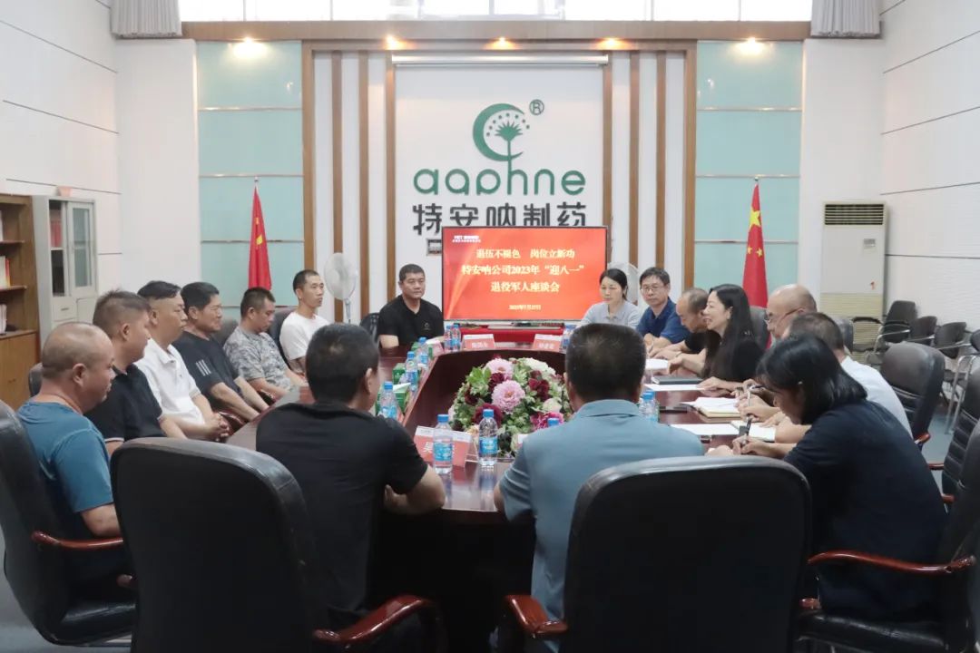 在“八一”建軍節(jié)即將到來(lái)之際,為熱烈慶祝中國(guó)人民解放軍建軍96周年,進(jìn)一步營(yíng)造公司愛(ài)國(guó)擁軍的優(yōu)良傳統(tǒng),7月27日上午,云南特安吶制藥股份有限公司(以下簡(jiǎn)稱特安吶公司)組織召開(kāi)退役軍人座談會(huì)。公司黨支部書記、副董事長(zhǎng)鄒慧寧主持會(huì)議,總經(jīng)理劉加強(qiáng),公司領(lǐng)導(dǎo)班子成員,退休及在職退役軍人參加會(huì)議。