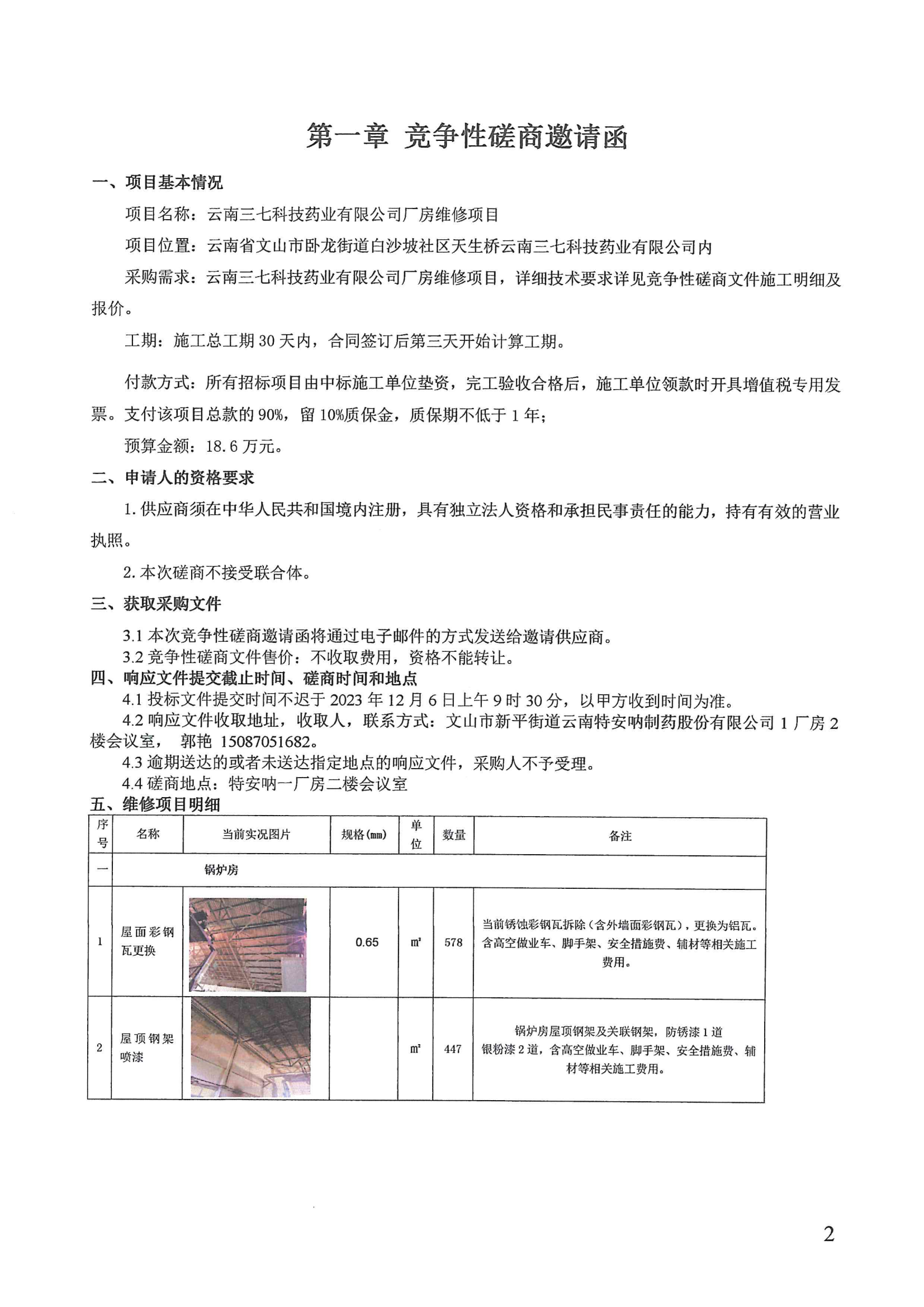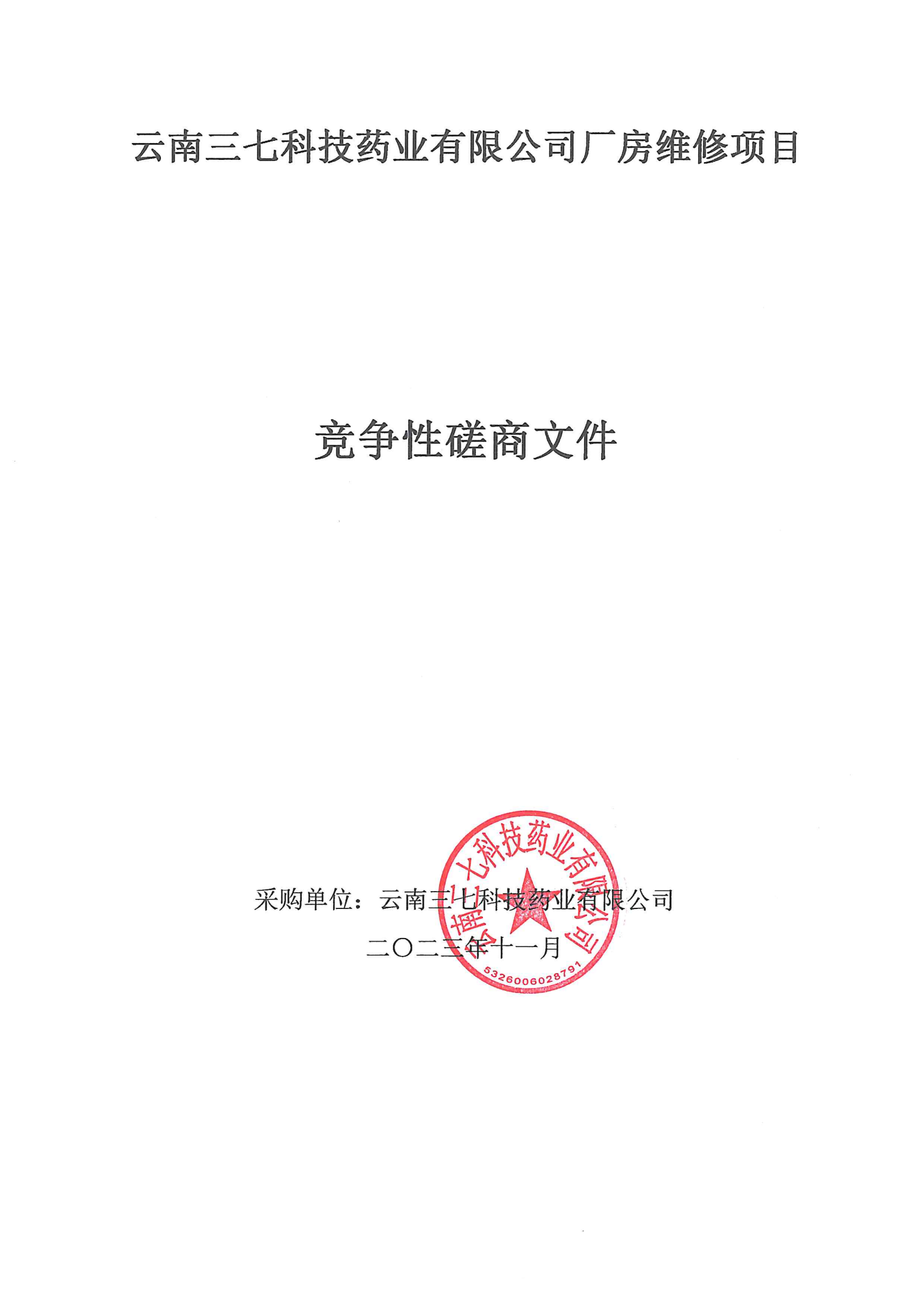 云南三七科技藥業(yè)有限公司廠房維修項(xiàng)目競(jìng)爭(zhēng)性磋商邀請(qǐng)