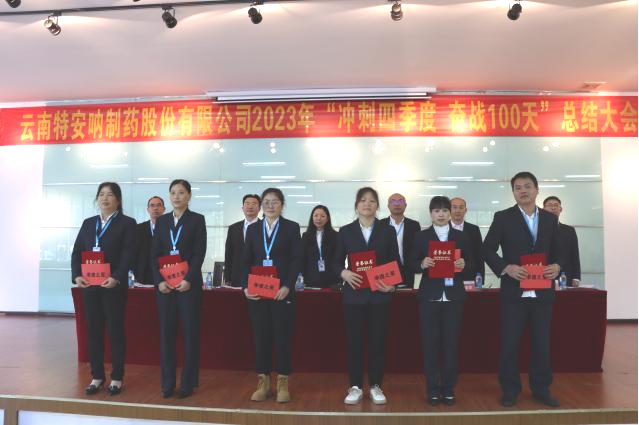 三七總皂苷提取車間代表張勇良、固體制劑車間代表李家慶、質(zhì)量管理部代表施永艷、財(cái)務(wù)部代表陳彩屏分別作分享發(fā)言。他們表示,在這過(guò)去的100天中,公司上下都面臨著巨大的壓力,大家有過(guò)擔(dān)憂,有過(guò)疑慮,但在領(lǐng)導(dǎo)班子的周密部署和率先垂范下,職工們咬著牙、牽著手,抱著必勝的信念共同踏上了征程。如今,2023年生產(chǎn)任務(wù)圓滿完成,大家心里都十分激動(dòng)、十分高興,對(duì)身為特安吶的一員充滿自豪,對(duì)公司的發(fā)展充滿信心。