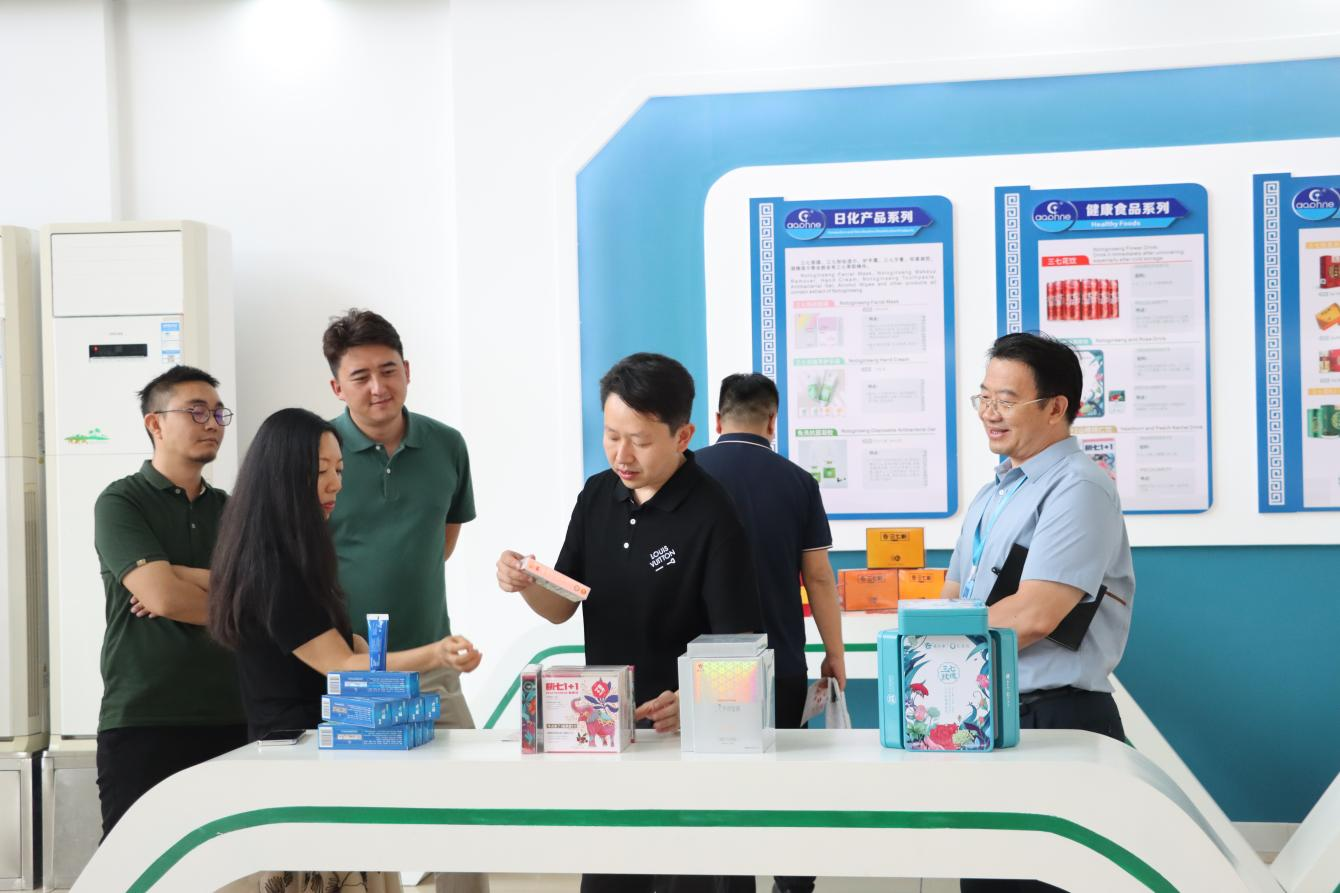文智弘一行參觀了公司形象展廳,觀看了宣傳片《蝶變》,聽取了公司發(fā)展戰(zhàn)略、企業(yè)文化、黨建工作、產(chǎn)品拓展等方面情況介紹。文智弘表示,特安吶公司在三七產(chǎn)業(yè)深耕多年,在三七總皂苷提取、藥品批文和藥品生產(chǎn)、三七特色藥品、產(chǎn)品研發(fā)等方面有著深厚積累。希望未來能夠與特安吶公司緊密聯(lián)系,在中藥材GAP種植共建共享、中藥材貿(mào)易、藥品市場推廣、黨建共建等方面加強交流合作,共同推動三七產(chǎn)業(yè)的發(fā)展。