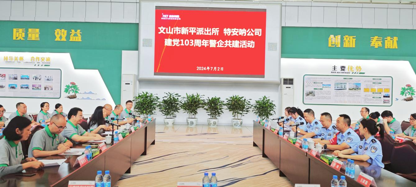 7月2日,為進(jìn)一步加強警企合作,構(gòu)建和諧穩(wěn)定的發(fā)展環(huán)境,文山市公安局新平派出所與特安吶公司聯(lián)合舉辦了建黨103周年警企共建活動。文山市公安局副局長金鑫、新平派出所黨支部書記、所長王世斌,黨支部紀(jì)律委員、教導(dǎo)員趙永明及特安吶公司黨支部書記、副董事長鄒慧寧,總經(jīng)理劉加強出席活動。