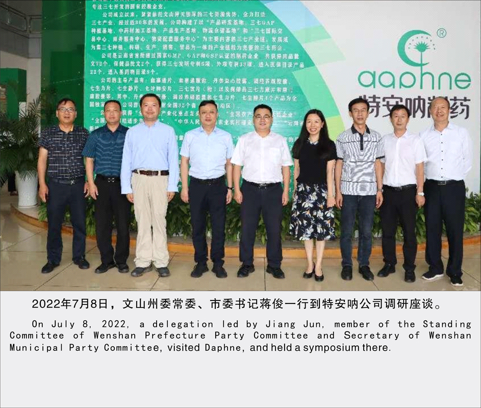 2022年7月8日,文山州委常委、市委書(shū)記蔣俊一行到特安吶公司調(diào)研座談