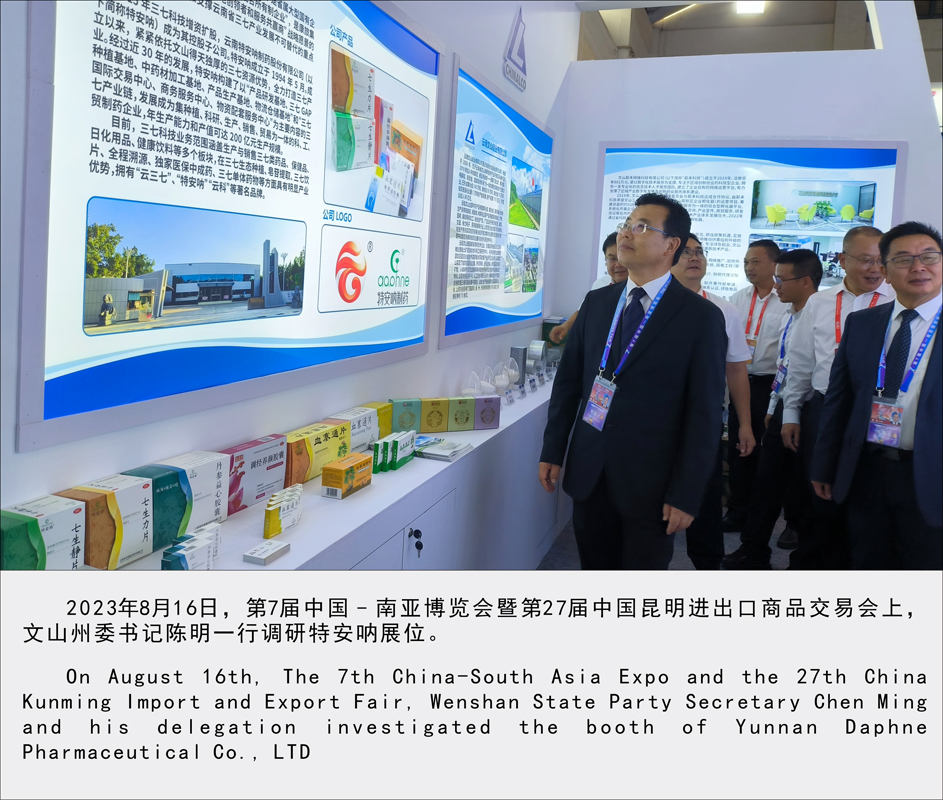 2023年8月16日,第7屆中國-南亞博覽會(huì)暨第27屆中國昆明進(jìn)出口商品交易會(huì)上, 文山州委書記陳明一行調(diào)研特安吶展位。