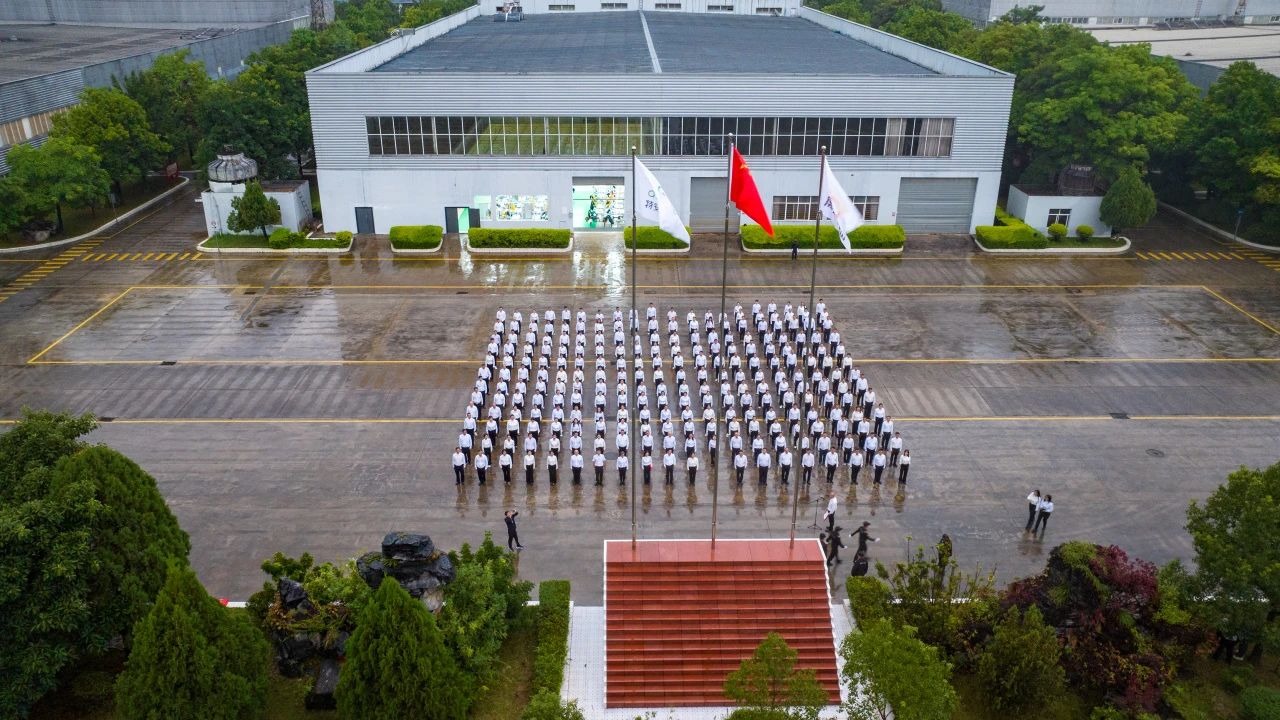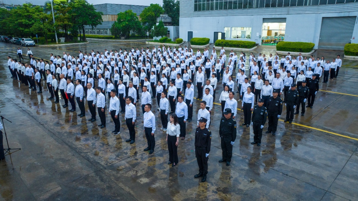 上午6:55,盡管天空飄著細(xì)雨,特安吶公司廠區(qū)內(nèi)依然莊嚴(yán)地響起了雄壯激昂的《義勇軍進(jìn)行曲》。在雨幕的映襯下,鮮艷的五星紅旗緩緩升起,迎風(fēng)飄揚(yáng),更添幾分莊重。在場的每一位干部職工神情肅穆,任憑雨點(diǎn)打濕衣襟,目光堅定地跟隨國旗的每一個上升軌跡,臉上流露出無比的自豪與驕傲。這面由無數(shù)革命先烈用鮮血和生命鑄就的旗幟,在雨水的洗禮下,不僅代表著祖國的尊嚴(yán)與榮耀,更激勵著特安吶的干部職工不畏艱難,勇往直前,勇攀事業(yè)的高峰。