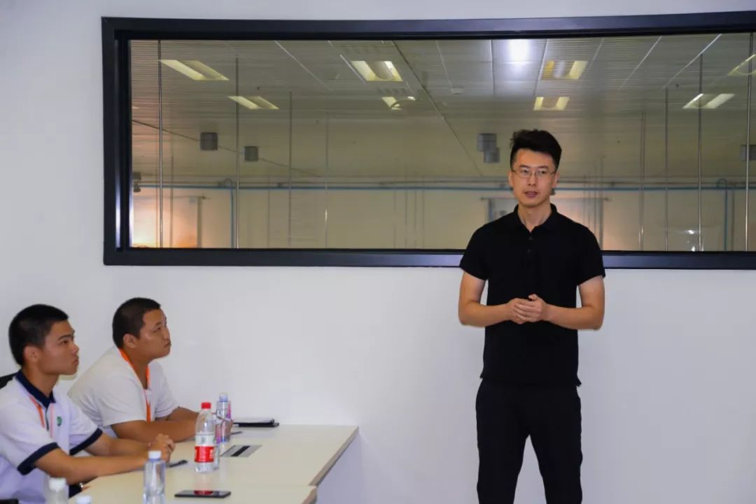 在佛山順德保時(shí)捷中心,行政人事經(jīng)理羅麗、售后經(jīng)理姜英、車間經(jīng)理隋國(guó)峰為同學(xué)們進(jìn)行了培訓(xùn)。首先,同學(xué)們一一進(jìn)行自我介紹,隨后通過羅經(jīng)理的詳細(xì)介紹,同學(xué)們了解到佛山順德保時(shí)捷中心由中國(guó)美東汽車控股有限公司投資建設(shè),提倡“以客為尊、團(tuán)隊(duì)成長(zhǎng)、追求卓越”的企業(yè)文化,采用公平透明的人才梯隊(duì)培養(yǎng)模式。