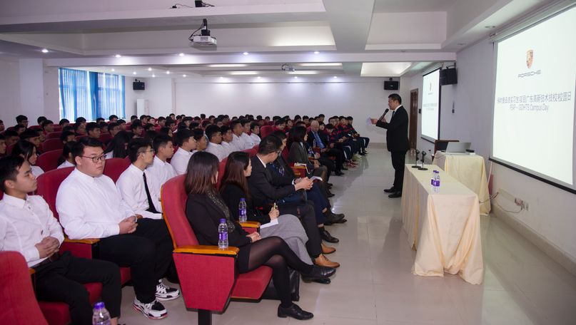 享有“跑車之王”美譽(yù)的世界著名高端汽車品牌保時(shí)捷(中國(guó))與我校達(dá)成了保時(shí)捷品質(zhì)實(shí)習(xí)生項(xiàng)目((Porsche Elite Apprentice Programme,即PEAP項(xiàng)目),項(xiàng)目啟動(dòng)發(fā)布會(huì)議于2月28日上午圓滿完成。宣講會(huì)現(xiàn)場(chǎng)