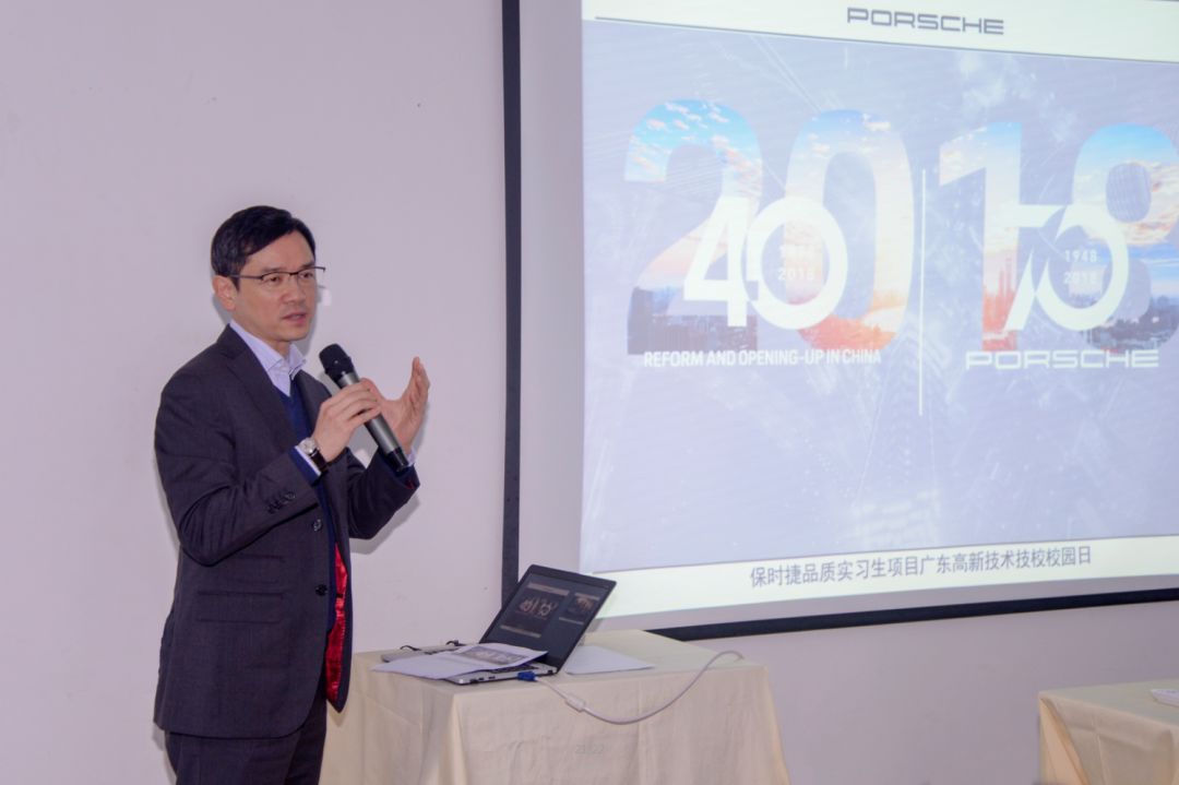接下來(lái),保時(shí)捷(中國(guó))汽車銷售有限公司人才學(xué)院院長(zhǎng)湛偉業(yè),與同學(xué)們分享了保時(shí)捷品牌創(chuàng)辦的理念,以及PEAP項(xiàng)目建立的初衷:源于保時(shí)捷汽車經(jīng)銷商對(duì)品牌下的維修、服務(wù)員工有所要求,但卻很難找到合適的人選,基于為經(jīng)銷商解決用人難題,PEAP項(xiàng)目在2010年順勢(shì)成立,保時(shí)捷(中國(guó))與各地優(yōu)秀職業(yè)院校合作,共同培養(yǎng)符合保時(shí)捷品質(zhì)的實(shí)習(xí)生,再推薦至各個(gè)經(jīng)銷商處服務(wù)。
