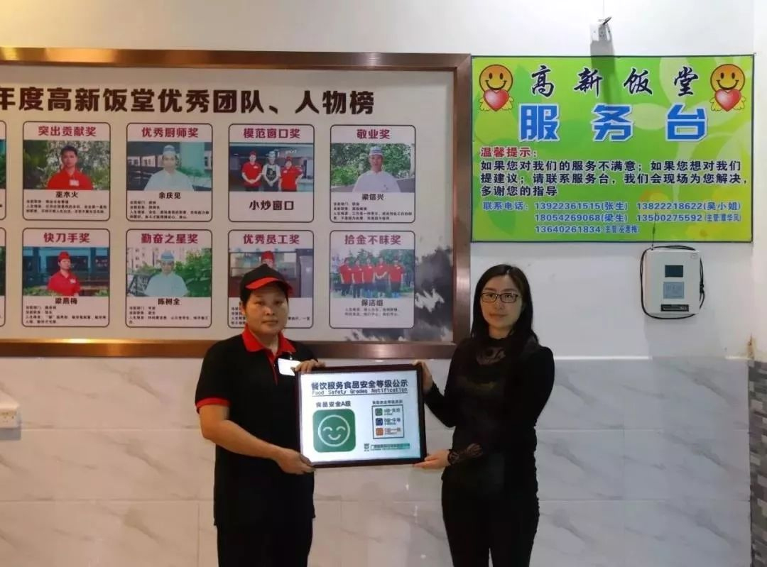 高新技校的兩所食堂已經(jīng)連續(xù)幾年被廣東省食品藥品監(jiān)督管理局評為“餐飲服務(wù)食品安全量化分級管理A級示范食堂”,學(xué)校所有的原料供應(yīng)商都經(jīng)公開招標(biāo)進(jìn)行采購,保證食品安全和質(zhì)量。從食材采購到加工、供餐進(jìn)行全過程數(shù)字化監(jiān)控。