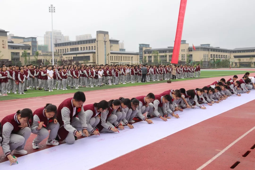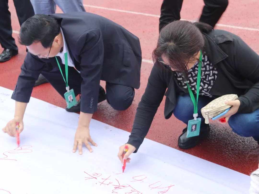 之后,師生們來到了百米長卷面前,用筆墨書寫了心聲和誓言。大家不忘初心,牢記使命。主席臺上,高一年級的張詩琪、曾伊萌、孔令羽和鄭暢同學(xué)為我們帶來了歌曲演唱《最初的夢想》。歌聲飄蕩在衡川運(yùn)動場的上空,最初的夢想永遠(yuǎn)在我們心中。