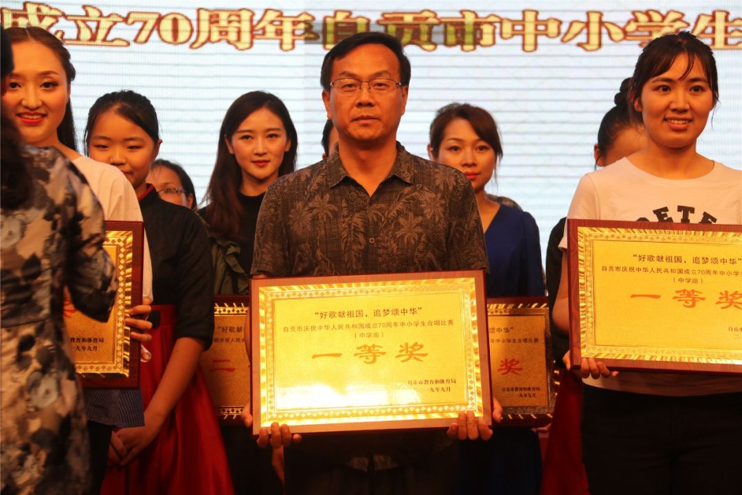 9月25日下午,由自貢市教體局主辦的“好歌獻(xiàn)祖國,追夢頌祖國”——慶祝中華人民共和國成立70周年合唱比賽在自貢市蜀光綠盛南湖校區(qū)舉行。來自全市的14支中學(xué)合唱隊參加了此次比賽。自貢衡川實驗學(xué)校合唱團(tuán)脫穎而出,榮獲一等獎第一名。