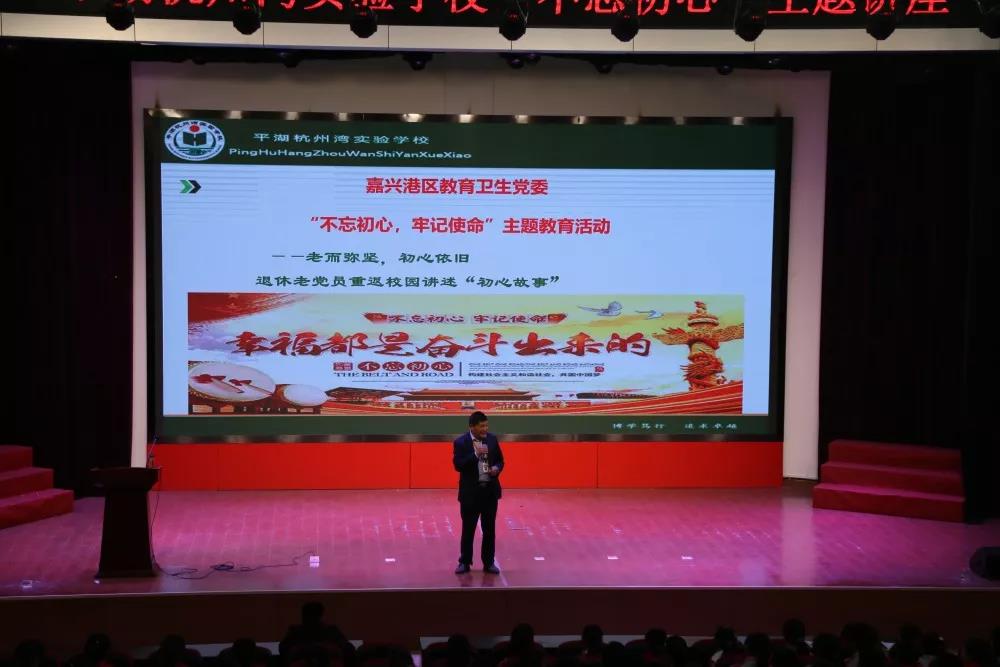 為深入開展:“不忘初心、牢記使命“主題教育,杭州灣實(shí)驗(yàn)學(xué)校利用班會課組織七、八年級學(xué)生和學(xué)校教師一起聆聽了校招生辦顧主任講述的“初心故事。“顧主任從教育的初心使命說起,以《老而彌堅(jiān),初心依舊—退休老黨員重返校園講述“初心故事“》為題,結(jié)合自己的親身經(jīng)歷,以從教四十年來學(xué)校教育的發(fā)展,學(xué)生層面的變化、教師能力的提高為主線,講授了一堂主題鮮明、內(nèi)容深刻的專題黨課。