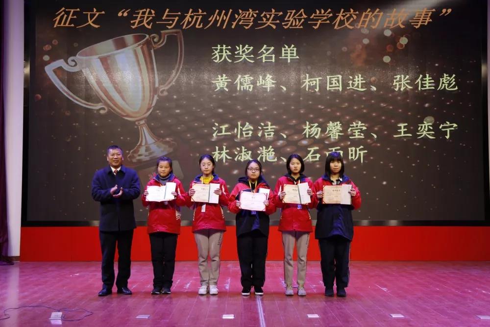 會上,還表彰了“我與杭州灣實驗學(xué)校的故事”征文獲獎人員,師生共敘校園情,同臺受獎?wù)坡書Q。
