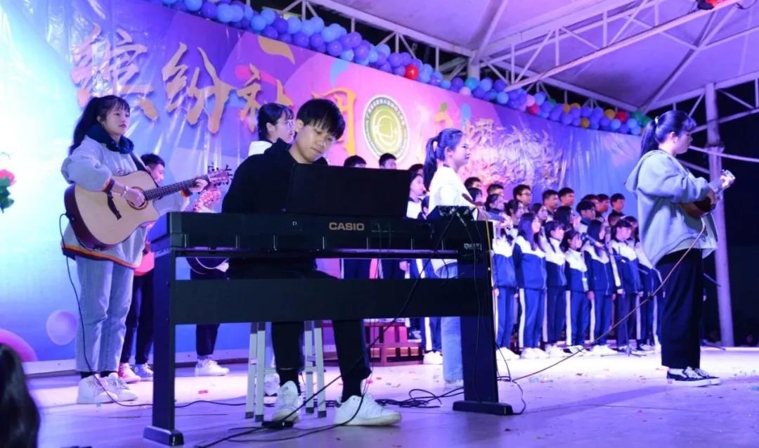 “就讓光芒折射淚濕的瞳孔、映出心中最想擁有的彩虹……”合唱團帶來勵志歌曲《我的夢》,壓軸登場。至此,社團成果展晚會落下帷幕。