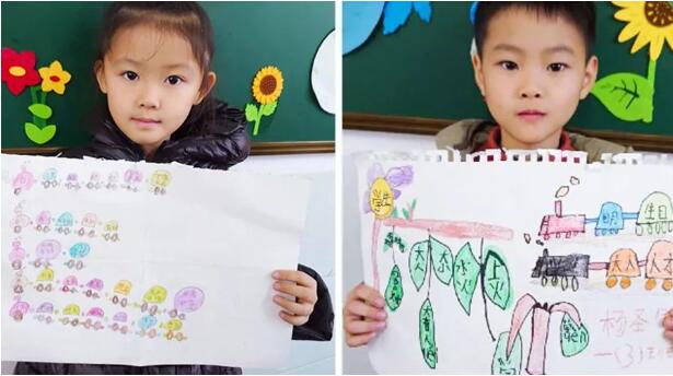 生字和簡筆畫的完美結(jié)合:由字組詞,由詞成句。瞧,一(1)班的小可愛們用自己的巧手給我們的生字寶寶畫上了一個(gè)個(gè)漂亮的小房子呢!