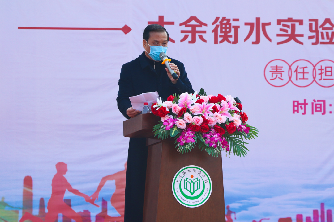 大余衡水實(shí)驗(yàn)學(xué)校書(shū)記、校長(zhǎng)王躍平作《彰顯家國(guó)情懷 提升生命素養(yǎng)》的新學(xué)期致辭。王校長(zhǎng)表示,在新冠肺炎爆發(fā)的特殊時(shí)期,黨和國(guó)家領(lǐng)導(dǎo)人以民為本的責(zé)任和擔(dān)當(dāng),全國(guó)人民同心同德、一往無(wú)前團(tuán)結(jié)抗疫,讓我們感受到了大中國(guó)的團(tuán)結(jié)、友善、互助和擔(dān)當(dāng);一線抗疫醫(yī)護(hù)工作者、人民解放軍、志愿者們的無(wú)私奉獻(xiàn),充分彰顯了他們舍小家為大家的家國(guó)情懷。王校長(zhǎng)告誡衡實(shí)莘莘學(xué)子,在困境面前要樹(shù)立正確的世界觀、人生觀、價(jià)值觀,培養(yǎng)愛(ài)國(guó)愛(ài)民、與人為善的家國(guó)情懷,在防疫抗災(zāi)過(guò)程中,提升自己的生命素養(yǎng),學(xué)會(huì)完善自我,知難逆行。同時(shí)王校長(zhǎng)寄語(yǔ)學(xué)生,要珍惜時(shí)光,提高學(xué)習(xí)效率,決戰(zhàn)中考、高考!