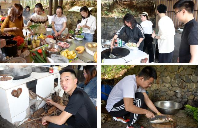 讀書(shū)沙龍活動(dòng)結(jié)束,大家集體殺到A哆自助廚房,吃貨們期待已久的柴火飯開(kāi)始。隨著鐘校的一聲令下,大家一個(gè)個(gè)化身廚房小能手,有燒火的、洗鍋洗碗的、洗菜切菜的、燒烤的、還有燒飯的大廚,整個(gè)場(chǎng)面熱火朝天,三十多人的飯菜,僅用時(shí)40多分鐘就完成了,充分體現(xiàn)了大余衡實(shí)小學(xué)部老師們的協(xié)作能力、凝聚力、戰(zhàn)斗力。