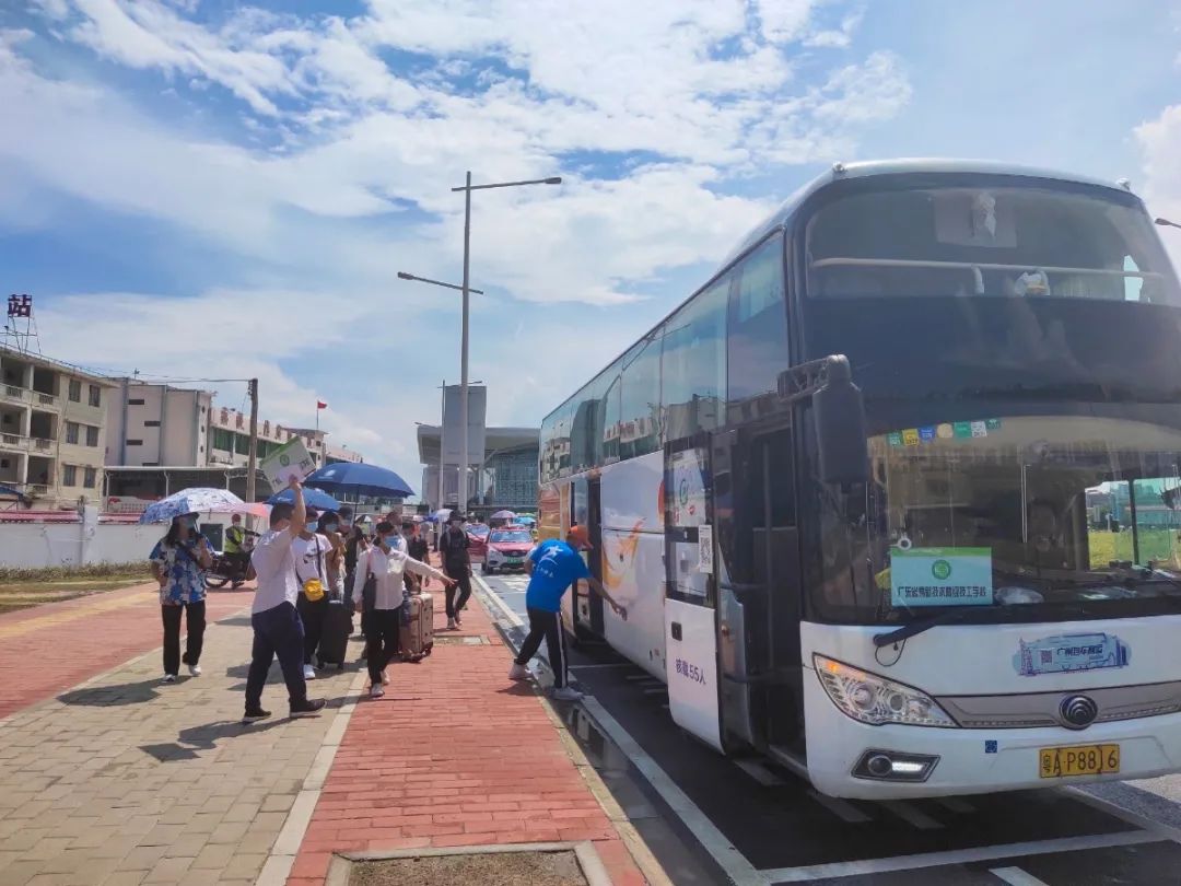 一大早負(fù)責(zé)接車的老師和“藍(lán)精靈”助教隊(duì)員出發(fā)去廣州北站、花都汽車站和花都廣場(chǎng)地鐵口迎接新生到來(lái)。