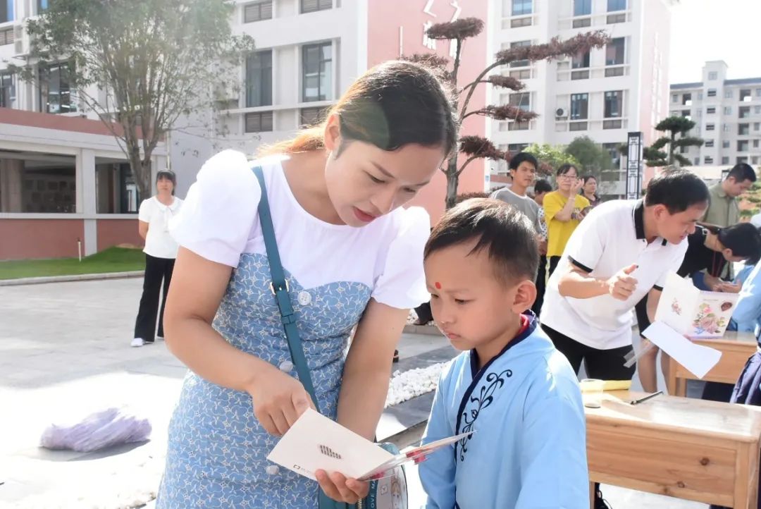 碧空如洗,秋高氣爽。為弘揚中華傳統(tǒng)文化精神,9月16日上午,大余衡水實驗學校隆重舉行“開蒙啟智 習禮明德”一年級新生開筆禮儀式。大余衡水實驗學校校長王躍平,副校長彭艷華,小學部校長鐘小娟,校長助理簡東英,小學部教務主任謝林燕、副主任黃婷,以及一年級全體新生家長和老師共同見證了此次莊重的開筆禮儀式。