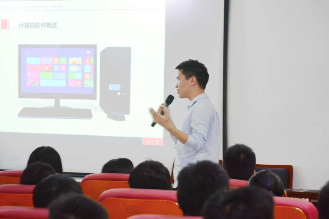 講座于天培樓會(huì)議室舉行,計(jì)算機(jī)與藝術(shù)系主任張振、年級(jí)主任王慶有、計(jì)算機(jī)專(zhuān)業(yè)陳亮老師和全體20計(jì)算機(jī)專(zhuān)業(yè)200名學(xué)生出席了講座。14:30,講座正式開(kāi)始。