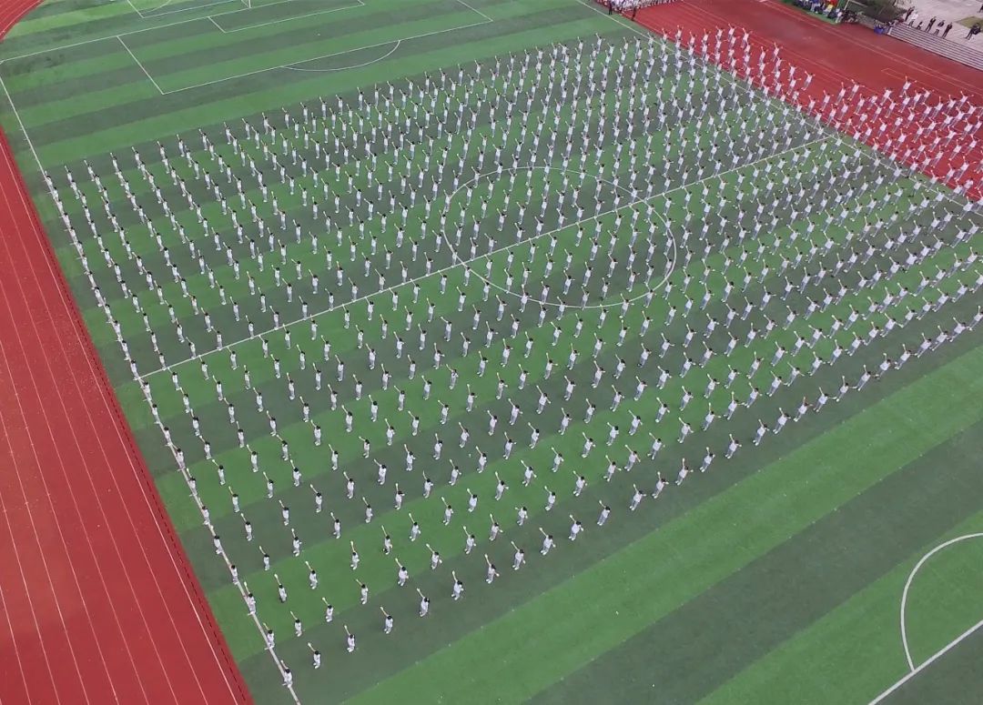 潔白的和平鴿應(yīng)聲而起飛向藍(lán)天,鼓樂隊(duì)奏響激昂的運(yùn)動(dòng)員進(jìn)行曲,班旗方陣與彩旗方陣的百余名同學(xué)擎著代表班級(jí)榮譽(yù)的旗幟,帶起陣陣破風(fēng)之聲,這聲音不僅預(yù)示著運(yùn)動(dòng)會(huì)的勝利開幕,更彰示著自貢衡川定將勢如破竹,走向更高的天空。初一、高一 花球啦啦操