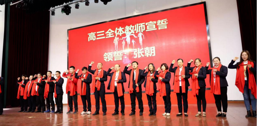 鮮紅的圍巾飄揚(yáng),老師們莊嚴(yán)宣誓,像軍師一般,為同學(xué)們定軍心、昂斗志,讓同學(xué)們知道,高考不是我們獨(dú)自的戰(zhàn)場,老師們永遠(yuǎn)與我們一起戰(zhàn)斗。
