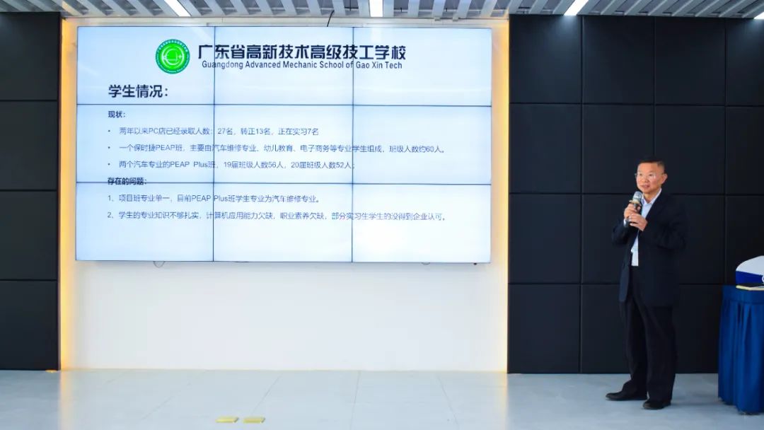 PEAP項目廣東高新負(fù)責(zé)人王則如老師從學(xué)生培養(yǎng)、教師隊伍、實訓(xùn)建設(shè)、項目管理評估等方面,作出項目匯報: