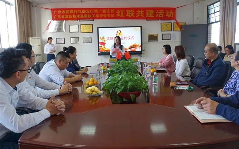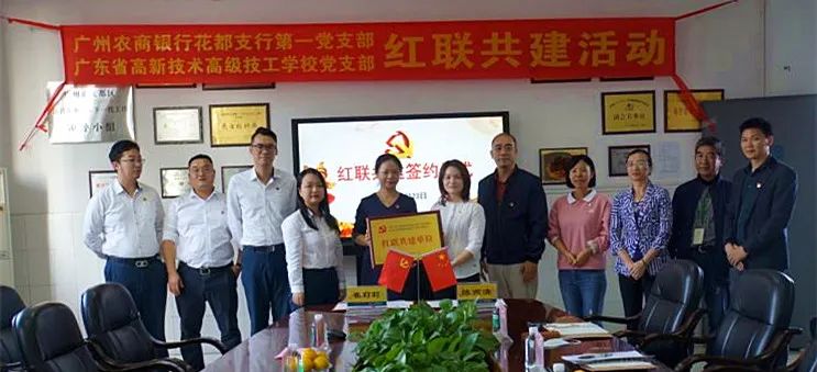 為進一步加強我校黨組織建設,提升新形勢下黨支部工作成效,實現(xiàn)黨建優(yōu)勢互補,我校黨支部與廣州農(nóng)商銀行花都支行第一黨支部舉行“紅聯(lián)共建”簽約儀式,開展黨建共建活動。