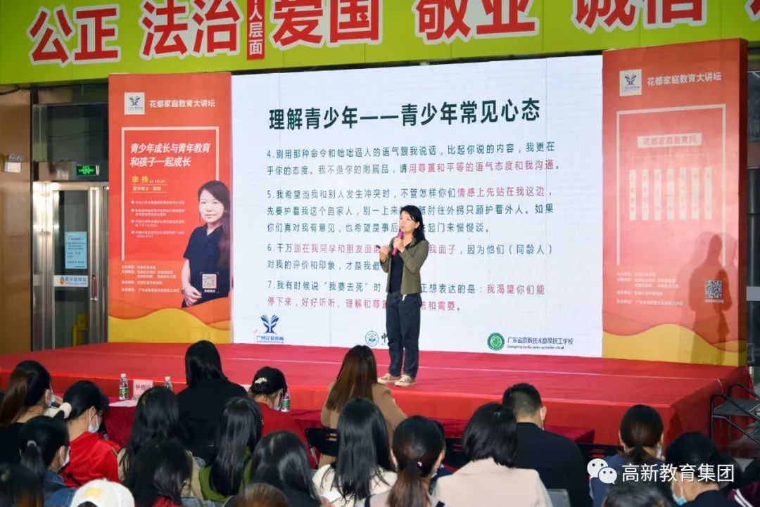 11月28日,由花都區(qū)教育局主辦,經(jīng)花都區(qū)文明辦、花都團(tuán)區(qū)委、花都區(qū)婦聯(lián)、花都區(qū)關(guān)工委、廣州市家庭教育促進(jìn)會(huì)等單位的全力支持,廣州高新教育集團(tuán)旗下學(xué)校廣東省高新技術(shù)高級(jí)技工學(xué)校承辦的花都家庭教育大講壇第4講“青少年成長與青年教育 與孩子一起成長”在花都區(qū)南華教育城正式開講。