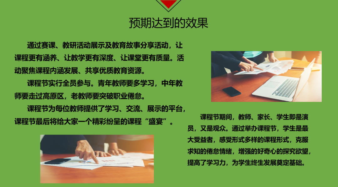 吳燕校長(zhǎng)首先從課程節(jié)的意義出發(fā),讓大家明確了課程節(jié)開(kāi)展的重要意義。然后從國(guó)家級(jí)課程展示、地方課程展示及校本課程展示、大課堂展示、優(yōu)秀教研活動(dòng)展示、班主任班會(huì)課比賽、家長(zhǎng)講堂、優(yōu)秀校本課程匯展及匯演等七個(gè)方面進(jìn)行了具體的闡述,讓大家找到了落實(shí)的方向。最后吳燕校長(zhǎng)對(duì)本次課程節(jié)的圓滿(mǎn)進(jìn)行表達(dá)了衷心的祝愿和滿(mǎn)滿(mǎn)的期待。她表示:本次課程節(jié)為每位教師提供了學(xué)習(xí)、交流、展示的平臺(tái),最后將給大家一個(gè)精彩紛呈的課程“盛宴”。課程節(jié)期間,教師、家長(zhǎng)、學(xué)生即是演員,又是觀眾。通過(guò)舉辦課程節(jié),學(xué)生是最大受益者,感受形式多樣的課程形式,克服求知的倦怠情緒,增強(qiáng)的好奇心的探究欲望,提高了學(xué)習(xí)力,為學(xué)生終生發(fā)展奠定基礎(chǔ)。