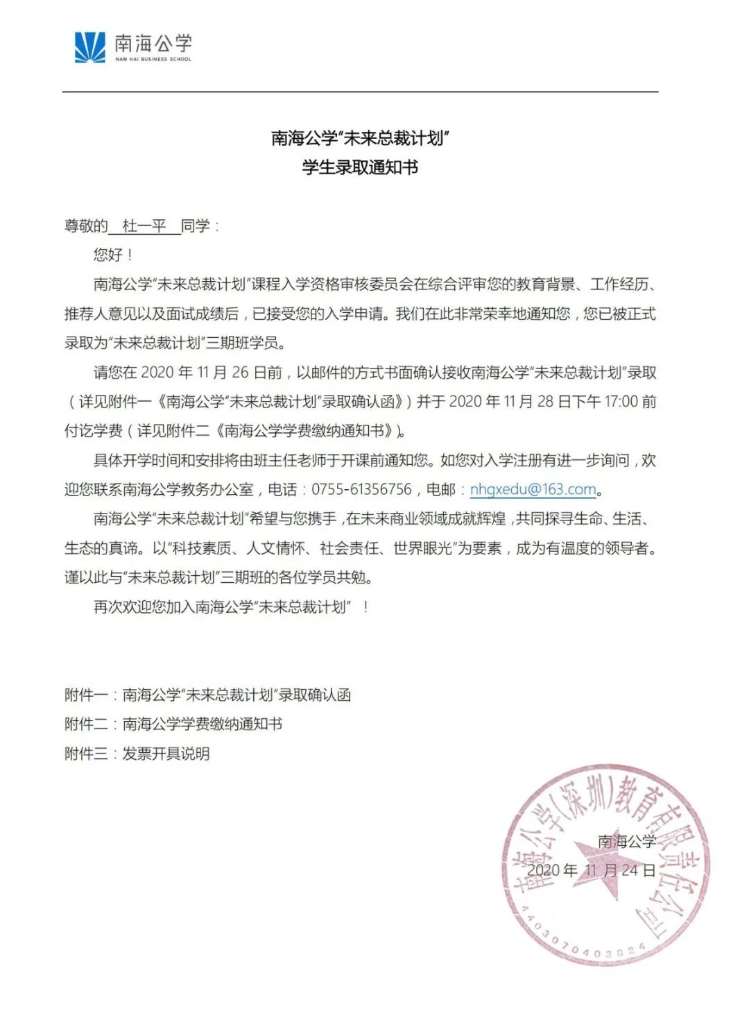 未來一年,4位新學(xué)員們將在南海公學(xué)進(jìn)修、學(xué)習(xí),相信南海公學(xué)頂級的師資力量和嚴(yán)謹(jǐn)?shù)膶W(xué)術(shù)體系將為新學(xué)員們開啟全新的職業(yè)生涯。