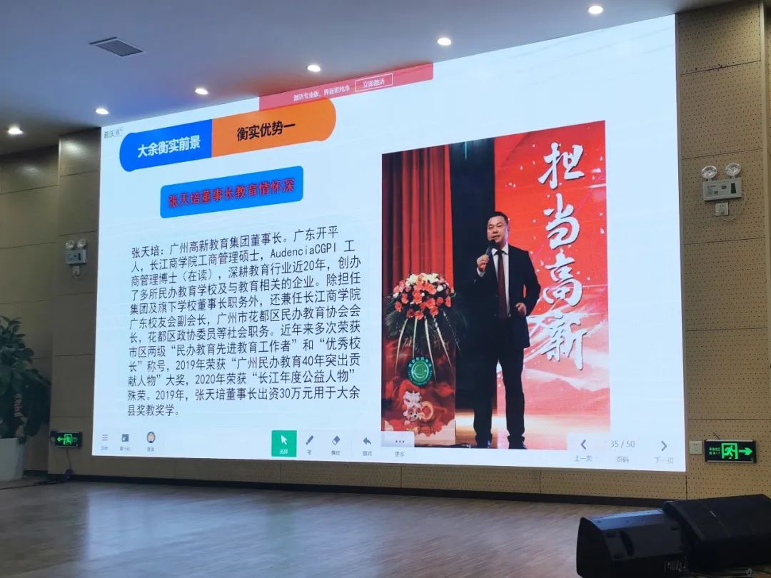 接著,曾局長以近三年大余教育的輝煌成績?yōu)槔單龃笥嗝褶k教育的光明前景。曾局長指出,大力發(fā)展民辦教育是十分重要的,民辦教育不僅有利于積蓄社會(huì)教育資源,滿足人民群眾對(duì)優(yōu)質(zhì)教育的強(qiáng)烈渴望,且機(jī)制靈活、適應(yīng)市場(chǎng)、講求實(shí)效,能夠有效地促進(jìn)教育供給的多樣化。更重要的是,大余衡實(shí)有著強(qiáng)大的教育實(shí)力背景,具有七大獨(dú)有的優(yōu)勢(shì):