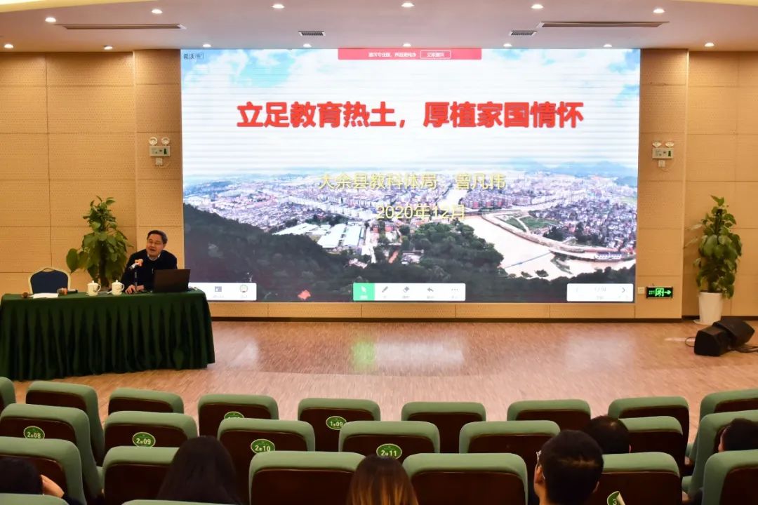冬日微寒,層林盡染。12月28日晚上,大余衡水實(shí)驗(yàn)學(xué)校報(bào)告廳內(nèi)不時(shí)爆發(fā)出熱烈的掌聲,一場(chǎng)由大余縣教科體局黨委書記、局長曾凡偉主講,主題為《立足教育熱土,厚植家國情懷》的講座正在如火如荼地進(jìn)行。講座由王躍平校長主持,大余衡水實(shí)驗(yàn)學(xué)校全體教師到場(chǎng)聆聽。